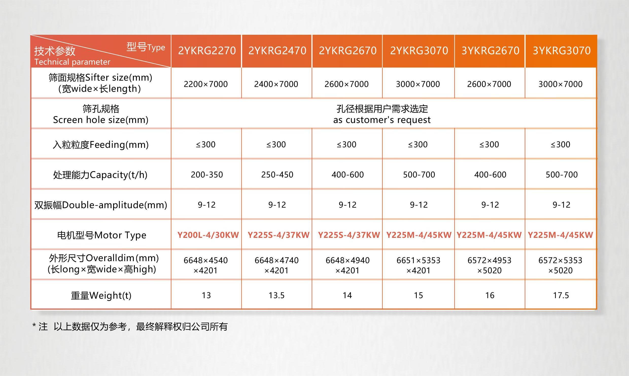 YKRG系列圓振動篩,是一種采用4組偏心塊、4個軸承的振動篩。其主要用于石礦場篩分石料,也可用于冶金、化工和煤炭等部門篩分中、細粒度的篩分。