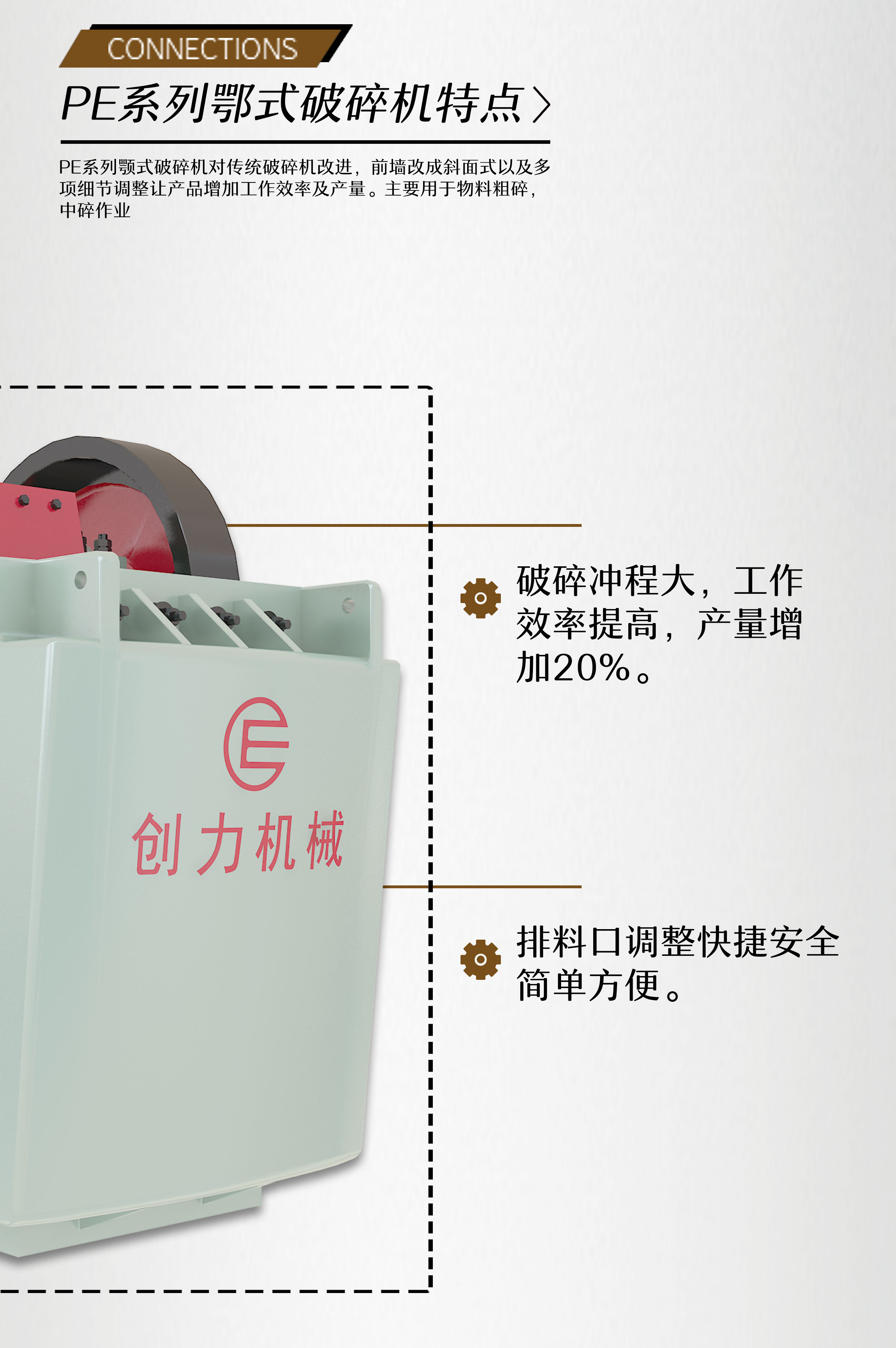 1、破碎沖程大,工作效率提高,產量增加20%。