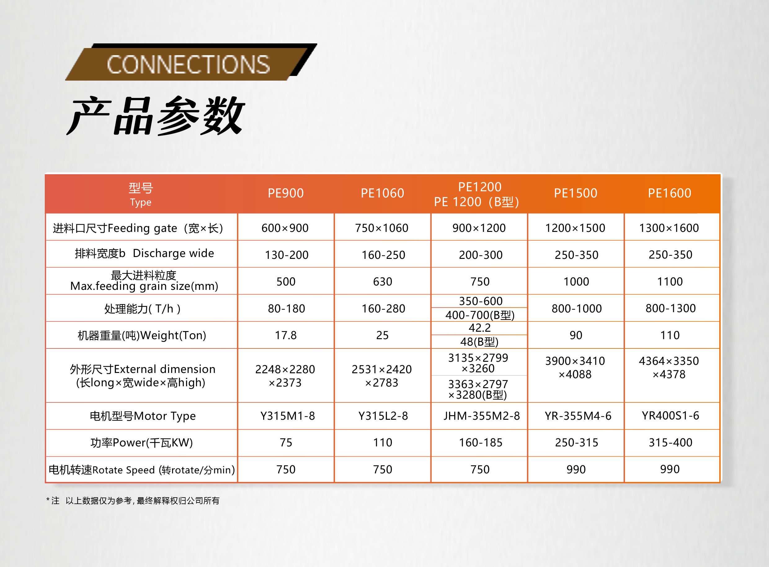 | 最大進料粒度(mm) | 500 | 630 | 750 | 1000 | 1100 |